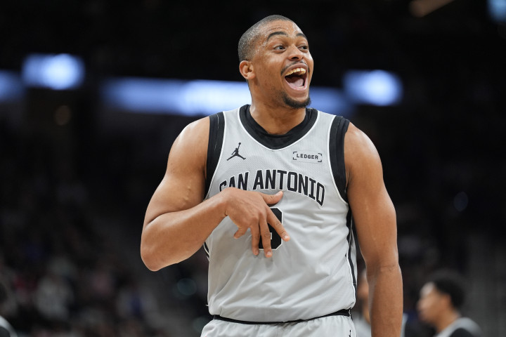 我们从大个子开始。他是我们所做一切的核心,无论是在进攻端还是防守端。我不是个数据分析控,所以我不能告诉你确切的正负值,但我长了眼睛。只要他在场上,就没有哪个晚上他不在影响着篮球比赛。他是本赛季联盟的MVP——毫无疑问。我们有斯蒂芬·卡斯尔,他在如此年轻的年纪就已经是联盟中最好的双向球员之一,而且他还在变得更好,这应该会让你们感到害怕。我们有达龙·福克斯,他是我们在圣安东尼奥拥有的巨大拼图。他带来了那份从容和领导力。他正是像我们这样一支年轻球队在风暴中所需要的镇定剂。我觉得有时这一点被忽视了。听着,我可以整天这么说下去,我们可以挨个点名。德文·瓦塞尔是我最好的朋友之一。他比我晚一年进联盟,在共同经历了所有的挣扎之后,看着他今年取得的成功,我个人感到非常满足。朱利安·尚帕尼是今年NBA最好的射手之一。哈里森·巴恩斯,我们的老将之一,一直让我们保持稳定。我们的新秀,哈珀和布莱恩特,天空才是他们的极限。称这个团队出类拔萃,感觉都说轻了。